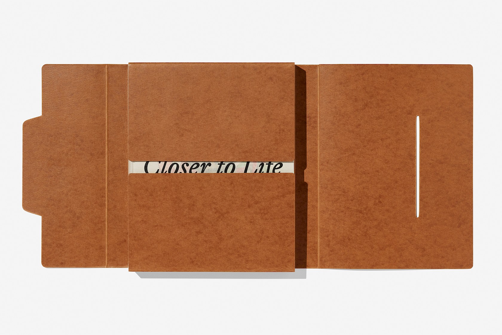 The hard-back cover shows Kim MacConnel’s Lotus Flower Decoration underneath a layer of gauze, a delicate cotton mesh traditionally used for pasting book spines. The inside is equally image-driven, featuring large-scale reproductions of drawings, collages, prints, artist books, and special editions in alphabetical order. We designed a limited edition folder made of acid-free archival board for 100 copies published in a limited edition, each accompanied by a print of Rosemarie Trockel’s Childless Figure.