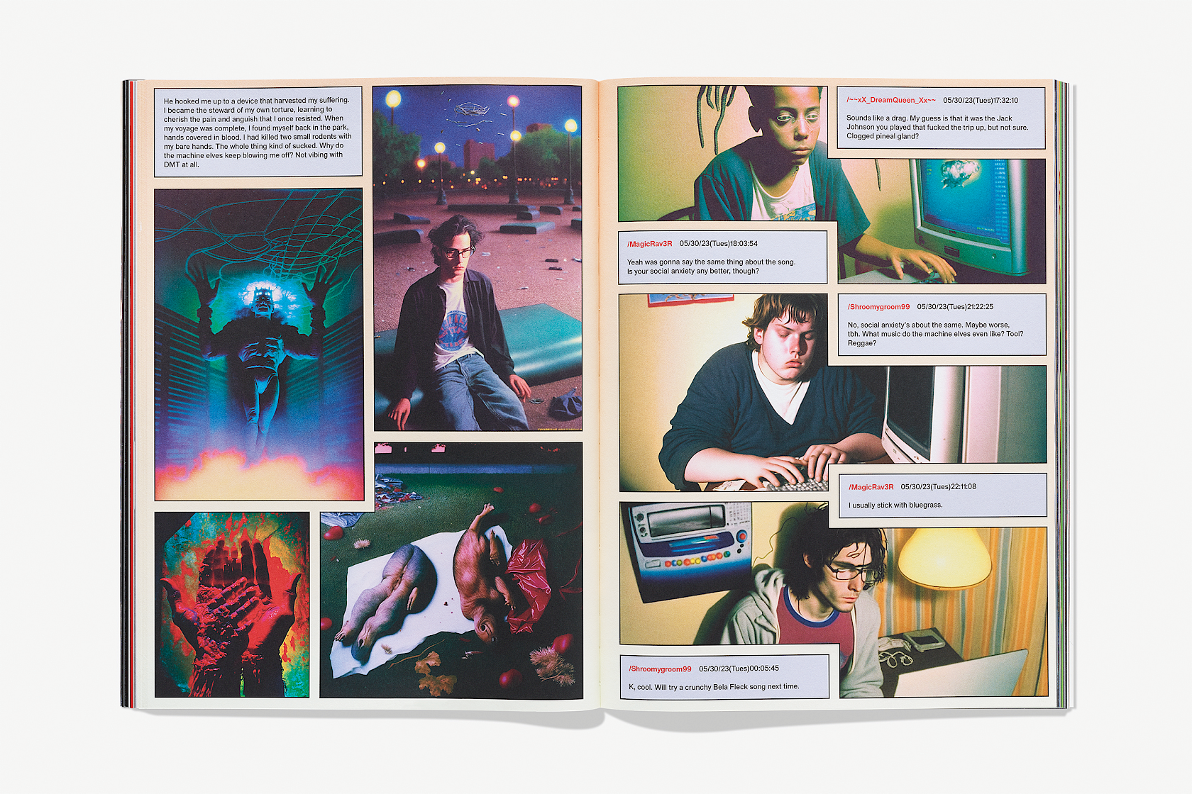The four covers present Gabriel Massan & LYZZA, Jon Rafman, Kali Malone and Gabriel Moses. The issue also includes features with Theo Triantafyllidis, Danielle Brathwaite-Shirley and Campbell Addy, alongside a special contribution from Hans Ulrich Obrist and original comic strip developed with artist Jon Rafman, whose computer-generated work “Minor Daemon” exhibited at 180 Studios to coincide with the issue launch.