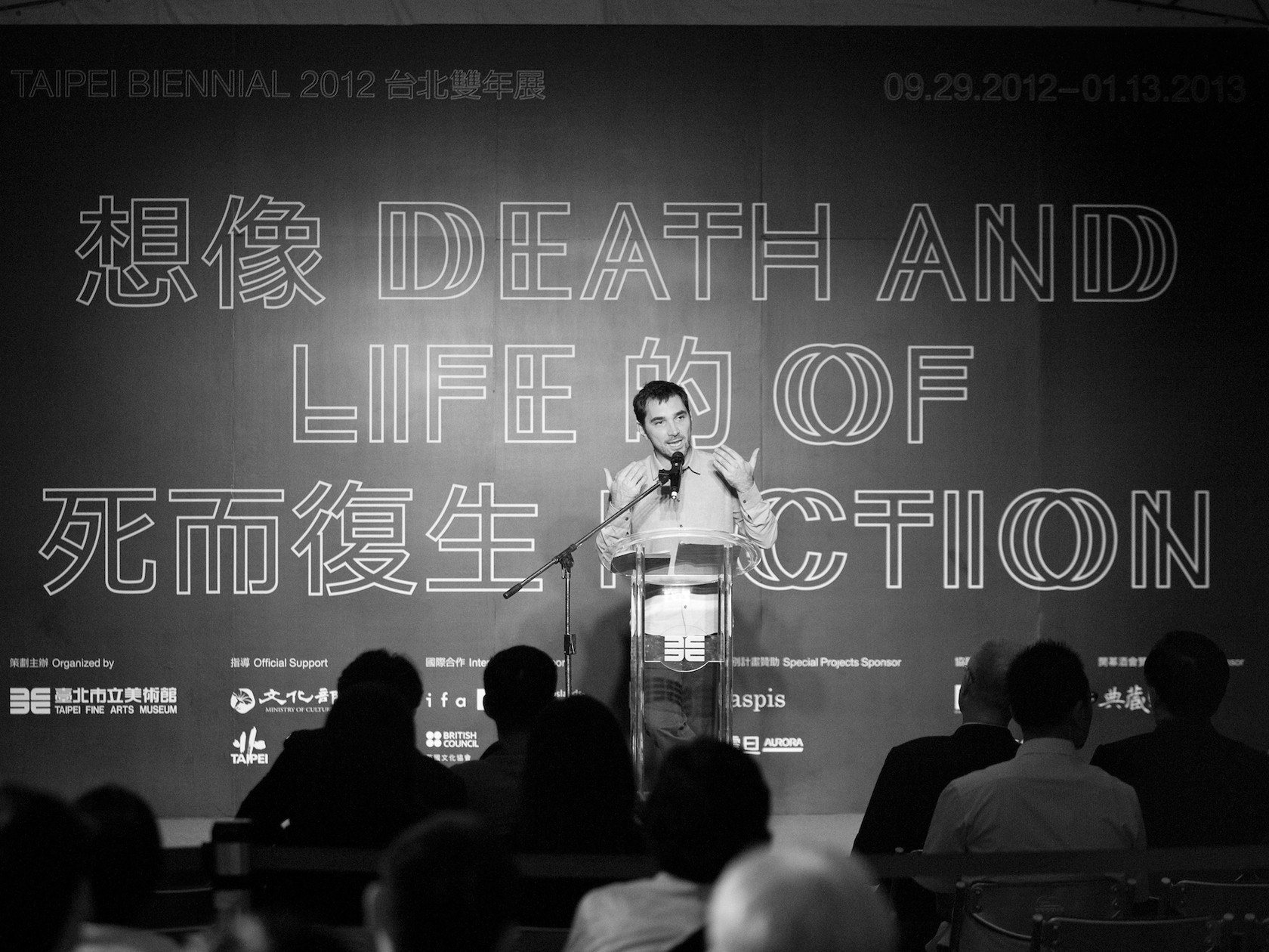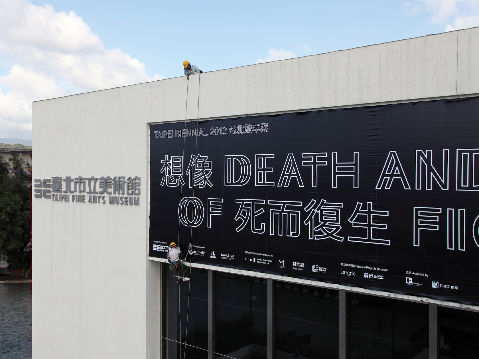 We were commissioned by curator Anselm Franke to design and art direct the visual identity of the eighth Taipei Biennial, Modern Monsters / Death and Life of Fiction. Invoking the ancient Chinese shape-shifting monster Taowu (a creature that sees both future and past), we created an identity with a scope that includes the original typeface Taowu Sans, Chinese and English guidebooks, a website, signage, wayfinding material and a media campaign deployed across Taipei, which wove together the doubling and manipulative effects of translation.